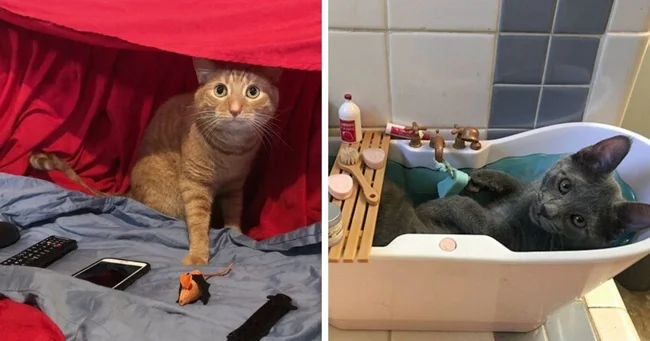 Well, how can you resist looking at these fluffy paws and pleading face? True, sometimes the face turns out to be very demanding, and the degree of pampering rapidly increases - today you just build a house out of blankets for the cat or treat him to a lobster, and tomorrow... Well, you do something like that, for example!