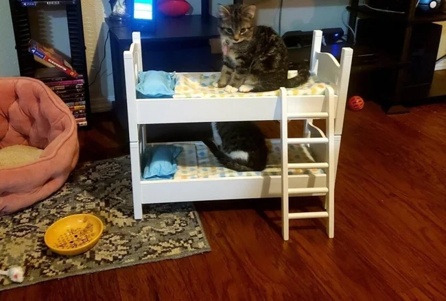 One of our kittens prefers to sleep in my daughter's doll bathtub.