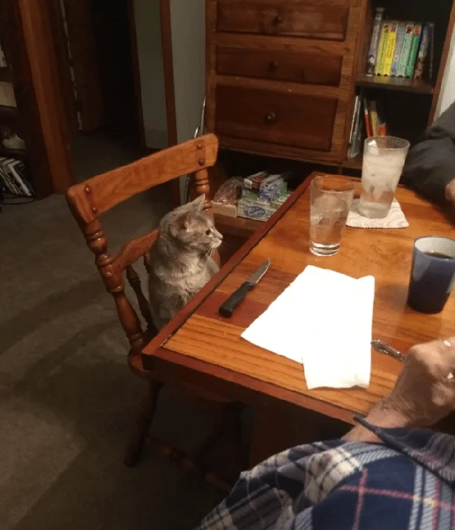 Grandparents went from “no cat” to “don’t take his place at the table”