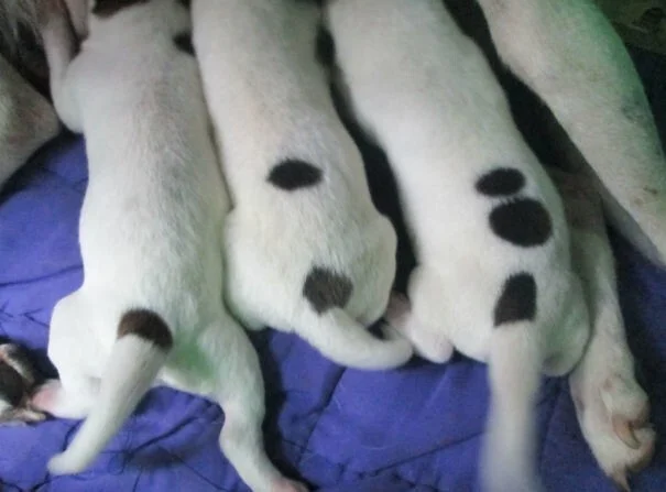 A litter of three puppies, it's impossible to get confused - each of them is marked as 1, 2 and 3 in the dominoes.
