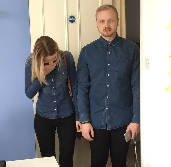 My wife's grandparents sent her this photo a few months ago. I realized that at school we dressed the same and had the same hairstyles. We've been together for 10 years!