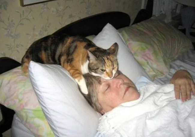 Cats can really feel that something is wrong with a person’s body. For example, by a changed smell (which is inaccessible to the human sense of smell) or by a rise in temperature. They just fall on those places where the temperature is higher.