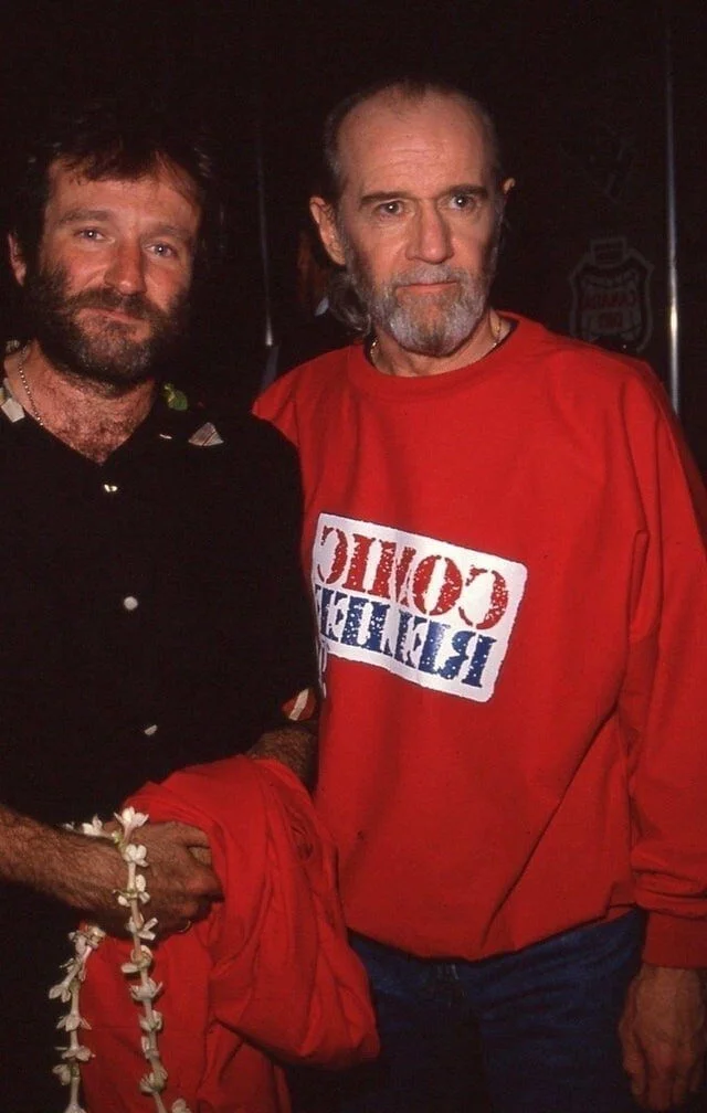 This photo perhaps captures two of the greatest comedians of all time, 1990.