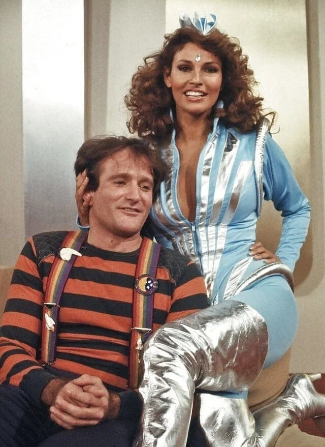 Raquel Welch with Robin Williams on the set of Mork and Mindy, November 18, 1979