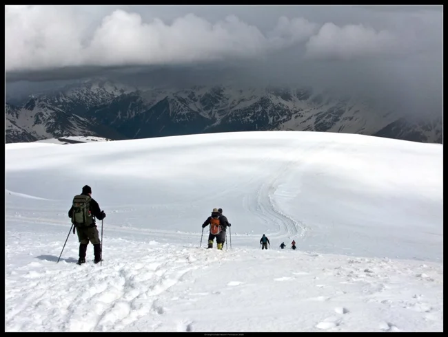 The instructors (there were two of them, and each climbed Elbrus more than 50 times, one was a professional rescuer) immediately said that Elbrus is the European Everest. Despite the difference in height, our volcano is considered almost as difficult to climb. One reason is the weather. It is impossible to predict what will happen over the mountain in a couple of hours. Even popular weather apps for climbers make mistakes.