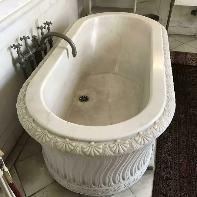 3. "A vintage bathtub from a Newport mansion serves four types of water: hot and cold salt water and hot and cold fresh water."