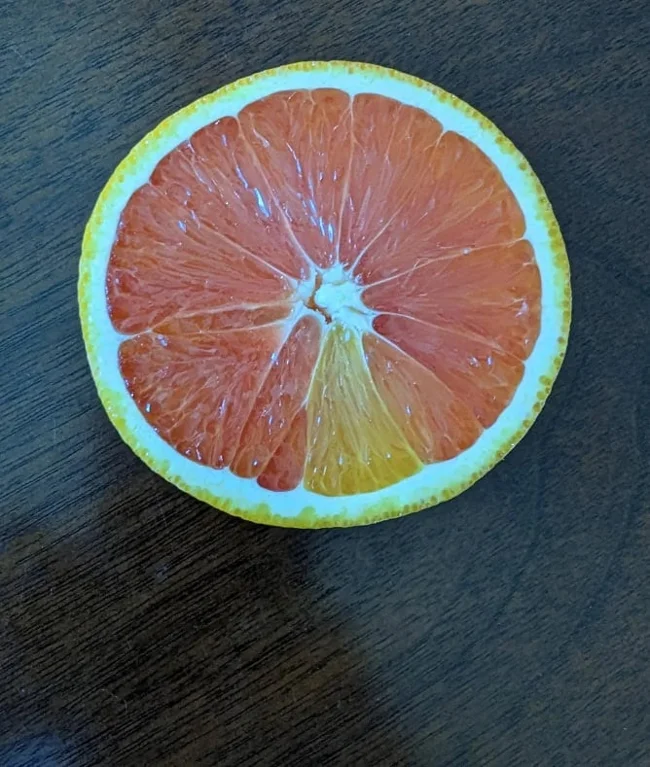 This orange has one segment of a different color.
