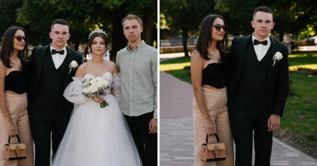 Please remove the newlyweds from the photo.