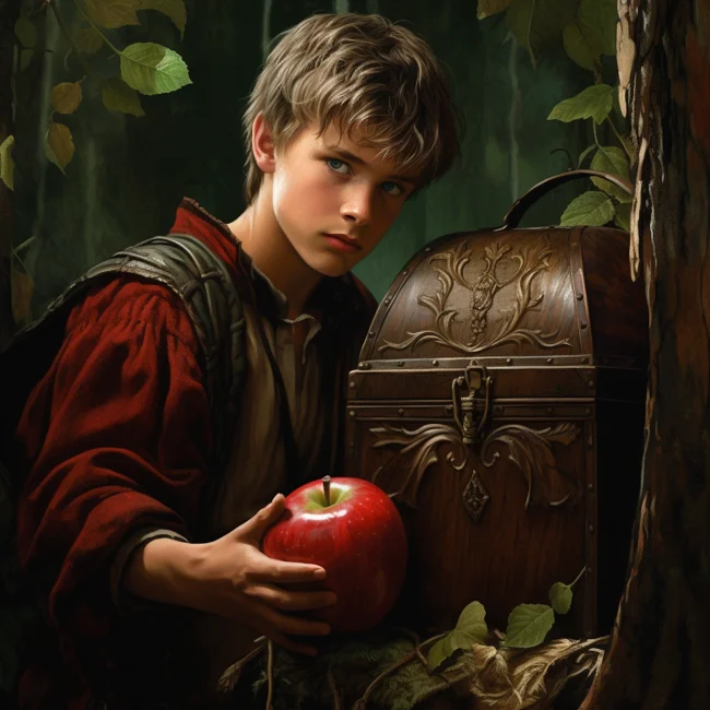 The stepmother decides to treat the boy to an apple, and, as we remember, in fairy tales, taking this fruit from someone’s hands is the same as helping Buffalo Bill drag the sofa into his van. The boy bends over the chest where the apple lies and the stepmother at that moment slams the lid, thus cutting off the child’s head. Then she returns the king's head to its place, adorning his neck with a scarf to hide the scar and hold it in place.