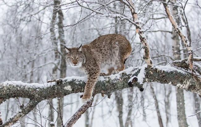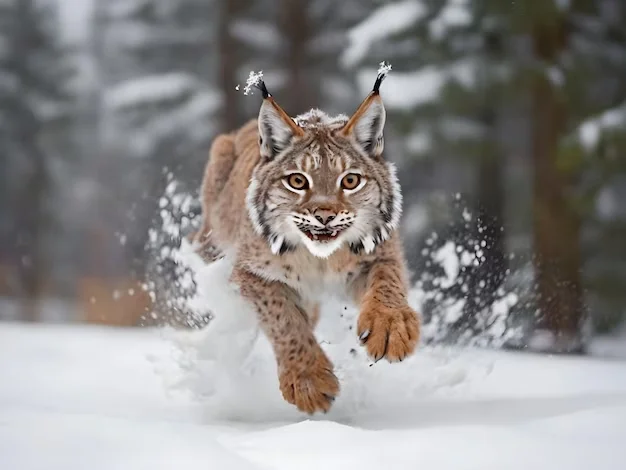 Snow cover greatly slows down ungulates and forces them to expend a lot of energy on movement. But the snowdrifts practically do not bother the predator. Its extra-wide paws work like snowshoes and prevent you from falling too deep. In addition, they hide steps remarkably well. The lynx is practically silent at any time of the year.