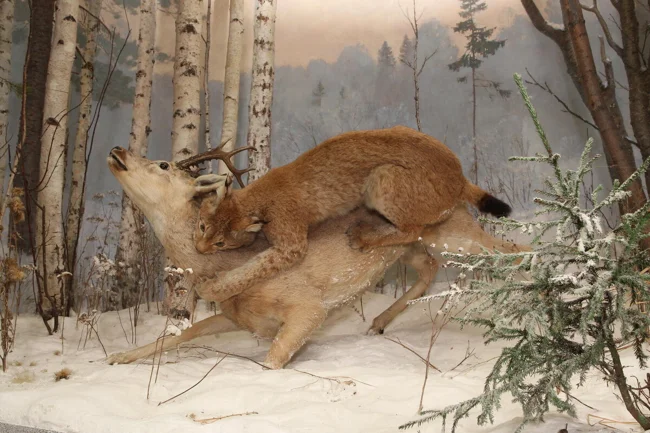 The animal tries to grab the throat of its prey. If this fails, then the predator hangs on the victim and holds on as long as it can. A large deer is able to escape from the capture, but this will not save him. The forest cat will follow the trail of bloody spots and overtake the tired and wounded animal later. The main thing in the process is not to run into a wolverine or a pack of wolves. They regularly take prey from the cat or even hunt it itself.