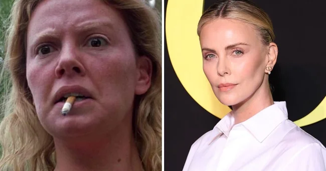 Charlize Theron's Oscar-winning role in the film "Monster" (2003) and her appearance in real life are heaven and earth.