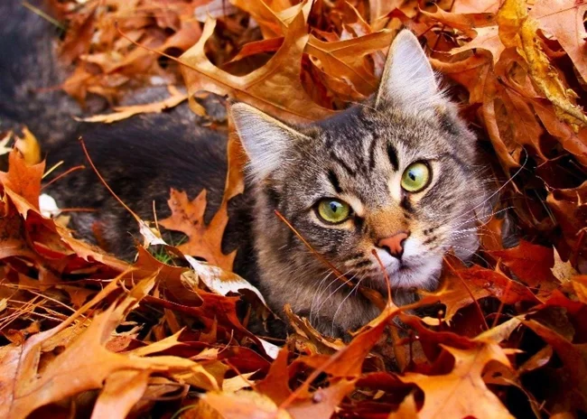 Leaf fall as an important milestone in the life of cats (21 photos)