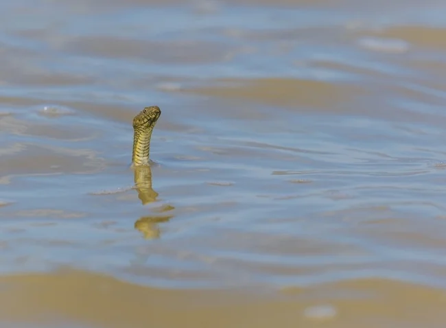 Even though the snake is safe for people, in its category the water snake is at the top of the food pyramid. It hunts small mammals, birds, amphibians and even snakes. Including vipers! So the snake is on our side, he’s our bro!