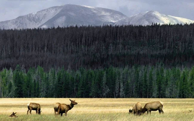 To restore the population of bison and elk, it is prohibited to hunt them in the park, and to prevent them from breeding in large numbers, wolves were specially brought here.