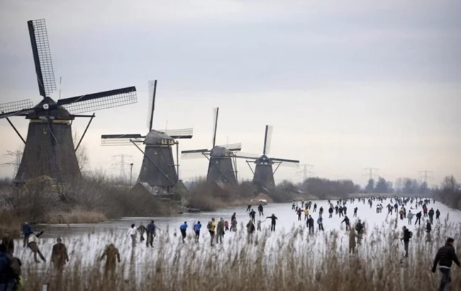 In the Netherlands there is a unique museum of historical wooden mills, which were brought from all over the country to the banks of a canal near Rotterdam. In winter, a large skating rink is opened here, and for each holiday the mills are decorated with colorful balls and garlands.
