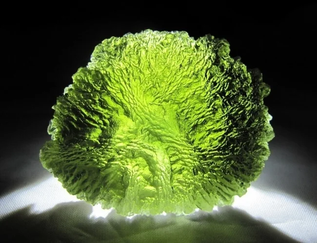 Moldavite is usually called so after the German name of the Vltava River - Moldau. It was there that moldavite was first discovered. The second name for moldavite is “bottle stone.” The mineral is a glassy siliceous rock. Moldavite can be light green, marsh green, dark green and even brown. This mineral was formed as a result of falling meteorites. Due to the high temperature and shock wave, silicon was sintered, turning into glassy rock.