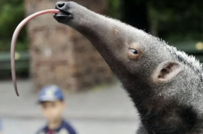 Its tongue reaches a length of 25 cm, and its sickle-shaped claws are 12-15 cm. With them, it destroys bee nests and termite mounds, extracting larvae and honey with its tongue.