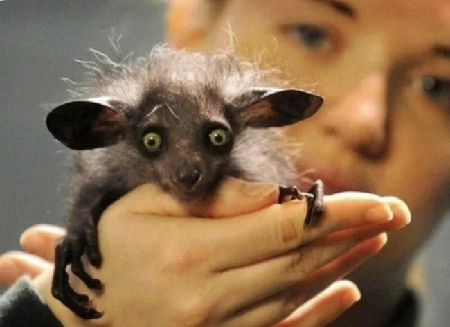 Other names are Madagascar monkey, woodpecker monkey, the rarest, endangered species, there are about two dozen of them left. This primitive primate got its strange name because of its awkward, frightening appearance; when someone saw it, they immediately gasped in fright.