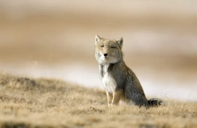 The Tibetan fox is small in size, slightly larger than a domestic cat, weighing no more than 5 kg. Has short legs and a bushy tail.