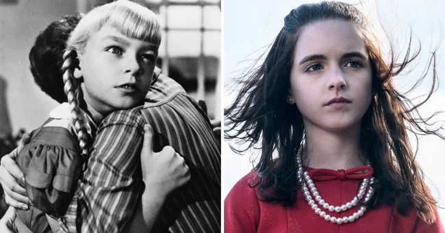 Patricia McCormack as Rhoda Penmark (1956) and McKenna Grace as Emma (2018).