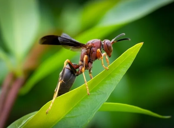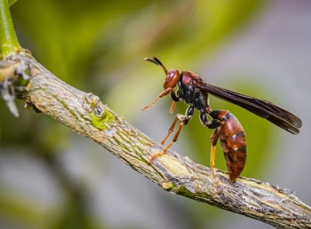 Finally, we got to three bite intensity ratings out of four. Polistes metricus wasps are often found on pest control farms. They are not very aggressive and only sting when they feel threatened. The intense pain from the bite lasts only a minute and then subsides.