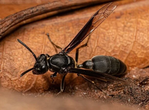 These black wasps are found throughout Central and South America, sting as much as two, and are quite aggressive. They even leave their poison on the nests - it instantly scares away enemies.