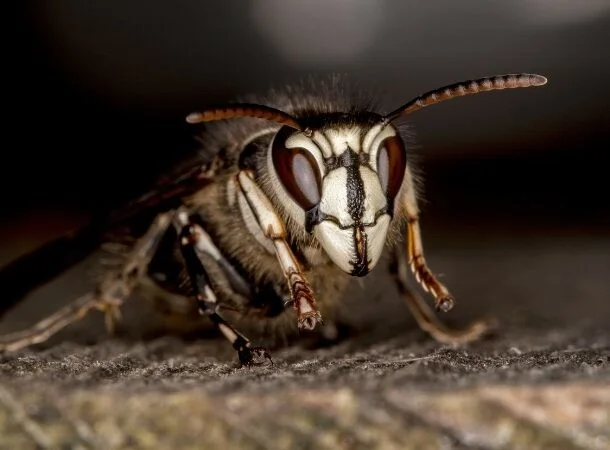 The wasp Dolichovespula maculata bites at two points on the Schmidt scale. They usually only sting if you are close to the nest. They mainly feed on flower nectar and eliminate insect pests.
