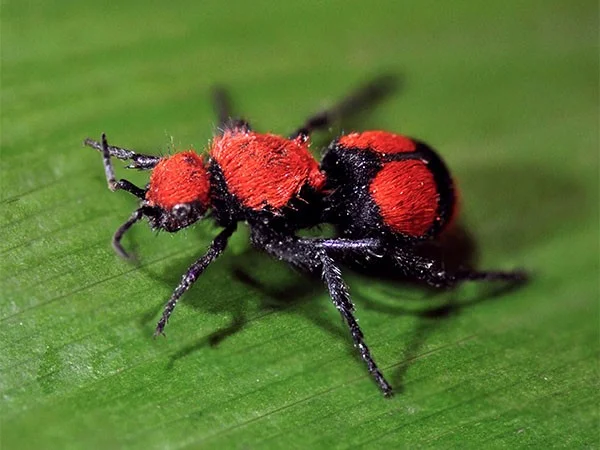 The velvet ant's sting is almost half the length of its body. If you don't bother them or pick them up, they won't bite. They bite at a level of three on the Schmidt index: the pain can last for half an hour.