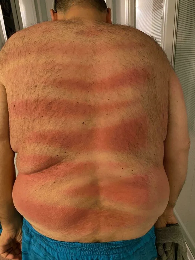 25. "First day at the beach and my wife made sure I didn't get sunburned by putting sunscreen on my back. I can't see back there - did she do a good job?"