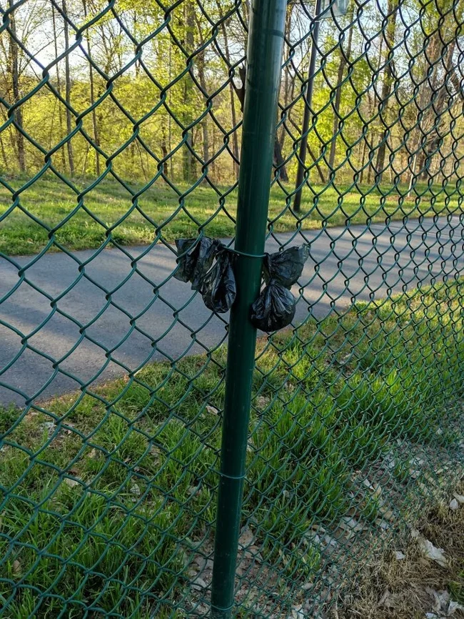 9. “The people at our dog park are too lazy to carry the poop bags to the trash can, so they hang them on the fence.”