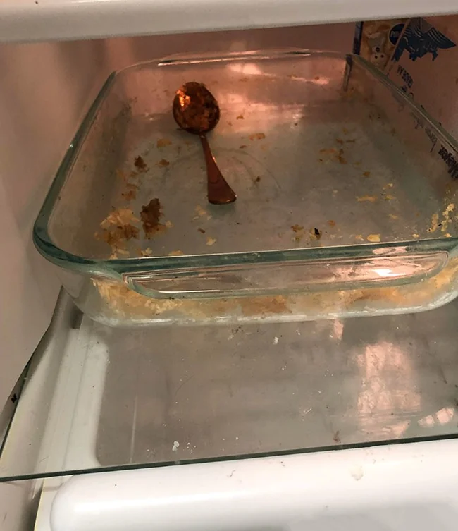 5. “I took the foil off it to see what was there, but it was empty. And it’s still in the refrigerator.”