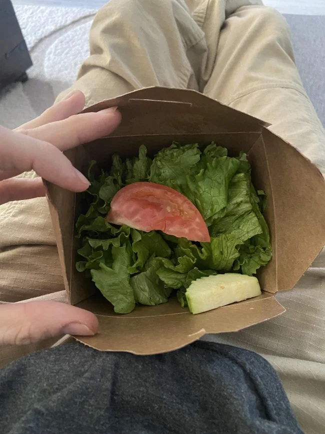 The girl ordered cannoli, but instead of dessert she received a rather meager salad