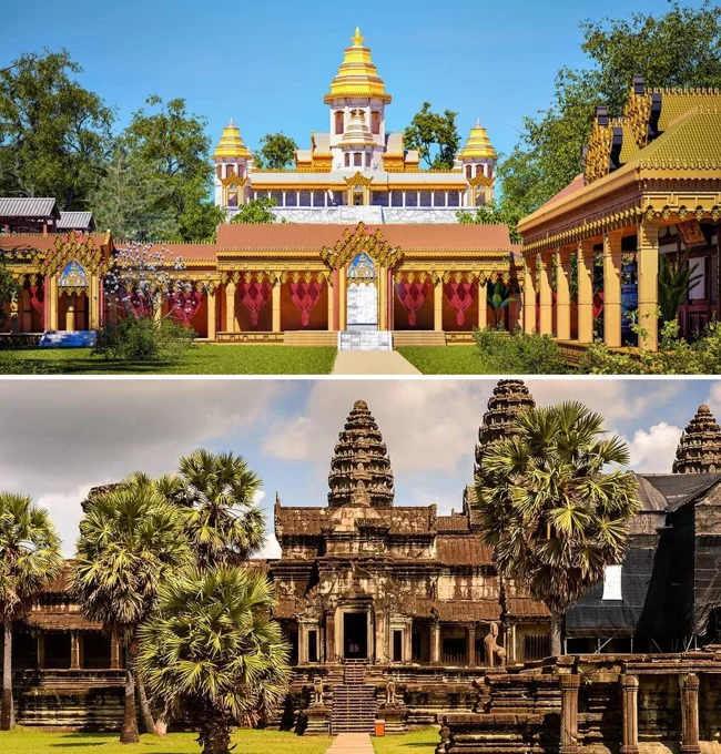 The earthy color of this Cambodian temple is so ingrained in the culture that it is hard to believe that it was once so bright and colorful.