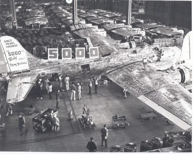 4. Workers at the 5000th Boeing B-17 Flying Fortress bomber in Seattle, USA, 1944