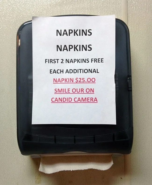 9. Meanwhile in Las Vegas. "The first two wipes are free, each subsequent one is $25. Smile, you're on camera."