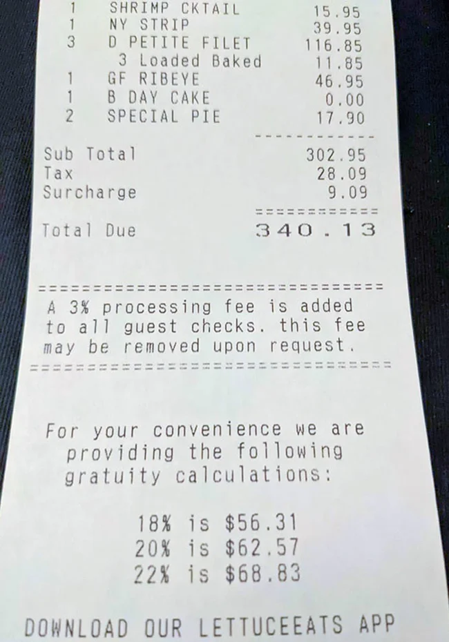 30. And in this restaurant they charge a 3% commission for no reason. But it can be canceled if you ask.