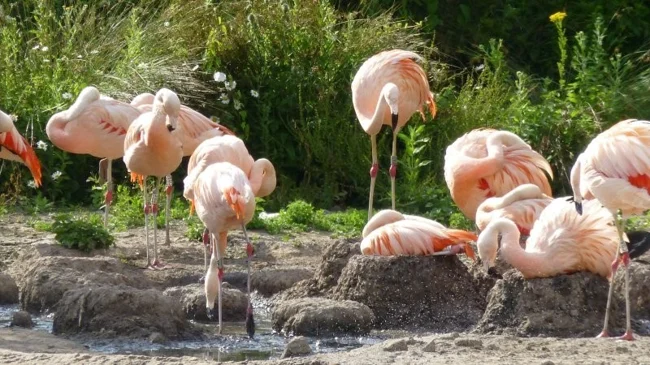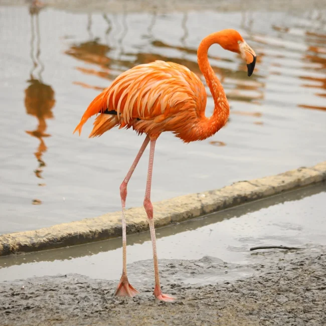 Flamingos can stand on one leg for a long time and even fall asleep in this position. According to research, this helps birds become less tired. In addition, some scientists believe that by standing on one leg, flamingos can keep the other leg warm under their belly. This position also helps them conserve heat that would normally be lost through their paws.