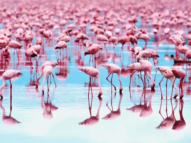 Lesser flamingos (Africa, northern part of the Indian subcontinent).