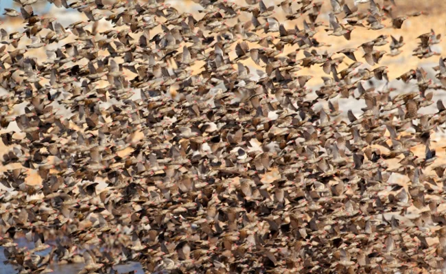 When you're so small, it's very difficult to protect yourself from predators on the savannah. Therefore, birds live in huge flocks - up to 40 million birds. But this is not the limit - the feathered crowd unites with representatives of other species: Sudanese golden sparrows, astrilds and barn swallows. Sociable guys - you can't say anything.