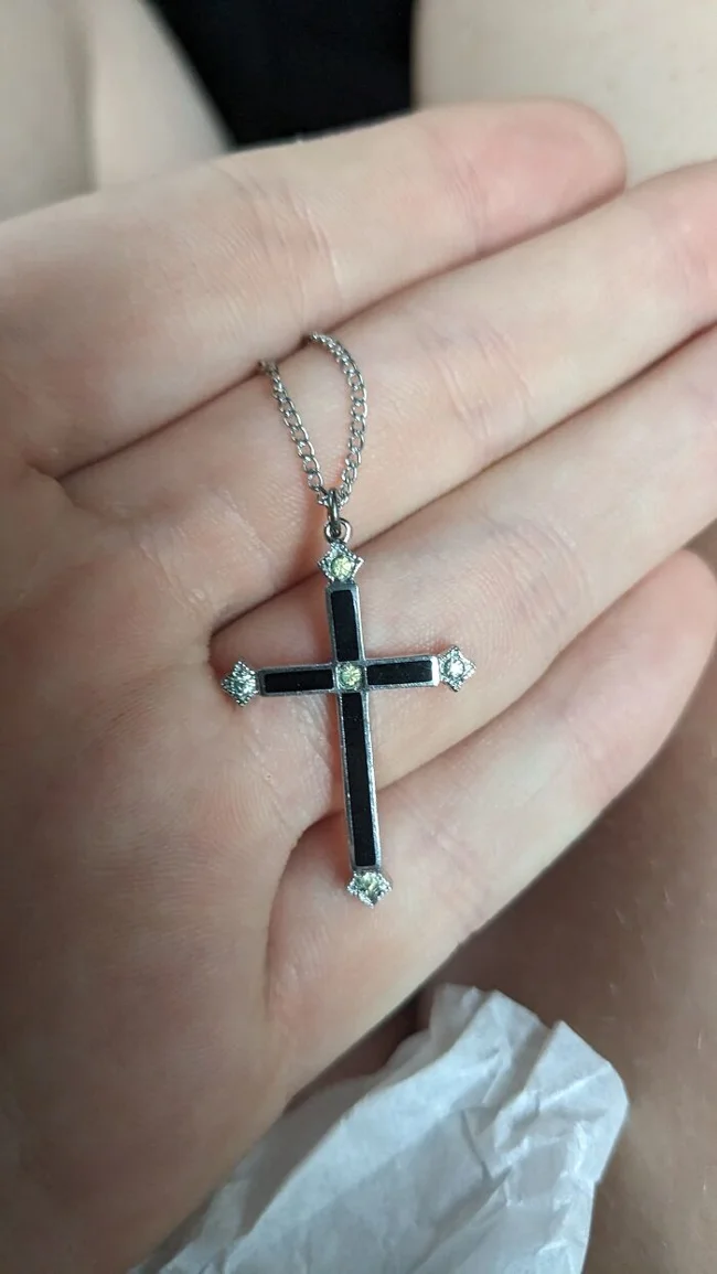 33. “A cross from the 50s and 60s with onyx and diamonds. It was given to my grandmother as a teenager, and to me for my 16th birthday.”