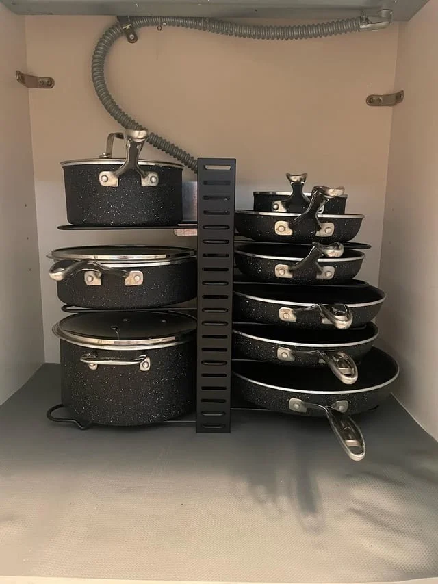 4. A pot rack not only looks good, but also helps organize everything in the kitchen.