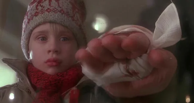 9. In the scenes where Marv walks barefoot in the snow, he was actually wearing special flesh-colored rubber socks. And the Christmas tree decorations that he steps on with his bare feet when he climbs through the window are actually made of sugar.
