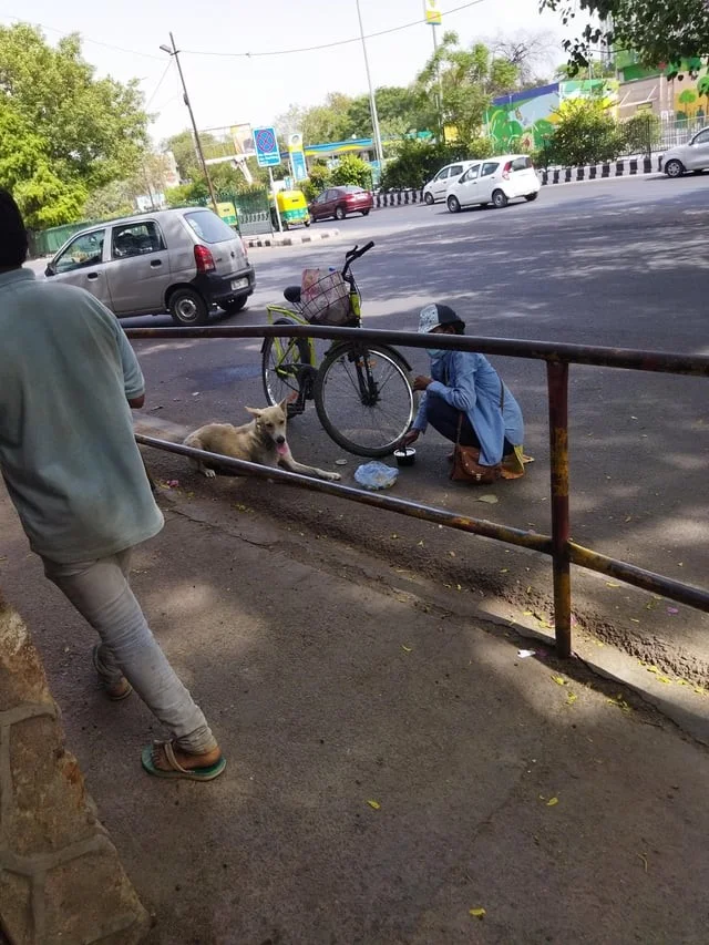 15. It’s 45°C outside, and the man continues to take care of stray dogs.