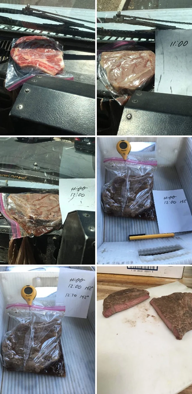 11. The mailman cooked a steak on the dashboard of a truck to show the inhumane working conditions in the summer.