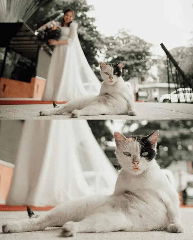 A stooped cat is the main wedding decoration