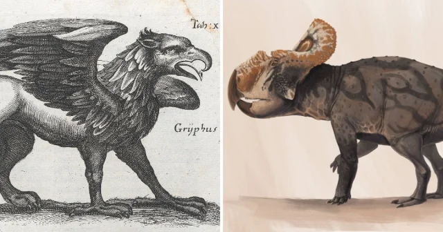The griffin is a winged creature with the head of an eagle and the body of a lion, which is found in various myths and fairy tales. Folklorists have repeatedly voiced the theory of the appearance of this monster in people's minds. It probably arose after they began regularly discovering fossilized skeletons of Protoceratops. These are fairly large dinosaurs with sharp beaks and horny collars.