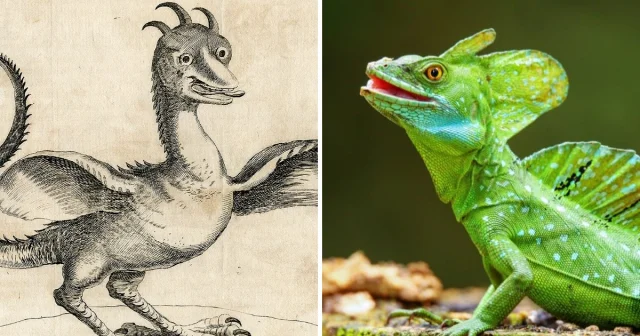 Scientists call the helmet-bearing basilisk the prototype of the sinister serpent basilisk, from whose gaze all living things are petrified (options with the Egyptian cobra and horned viper are less common). Human imagination has turned a small reptile into a terrible monster, similar to a rooster with tiger claws and dragon wings.