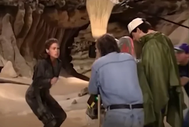 8. Since the arachnids were created entirely using computer graphics, the actors had to interact with the void. To give the actors something to concentrate on, tennis balls, flags and even brooms were used.