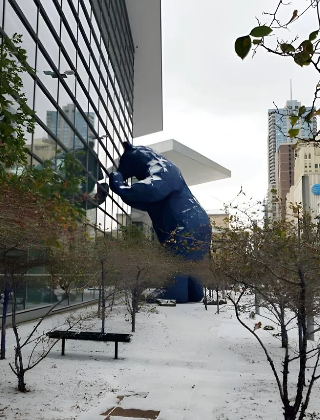 Statue of a bear looking into a building. Denver, Colorado